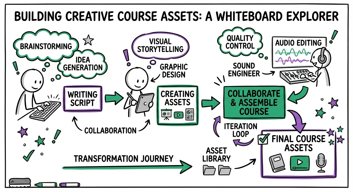 - Multimedia Production: Recording voiceovers, filming video, and designing custom graphics/illustrations.
