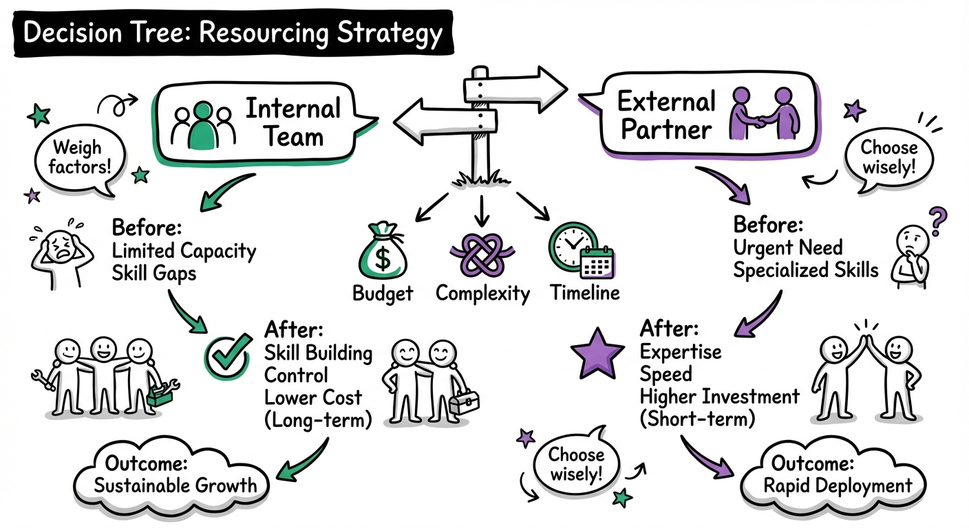 - Capacity: Your internal team is buried, and the deadline is tight.